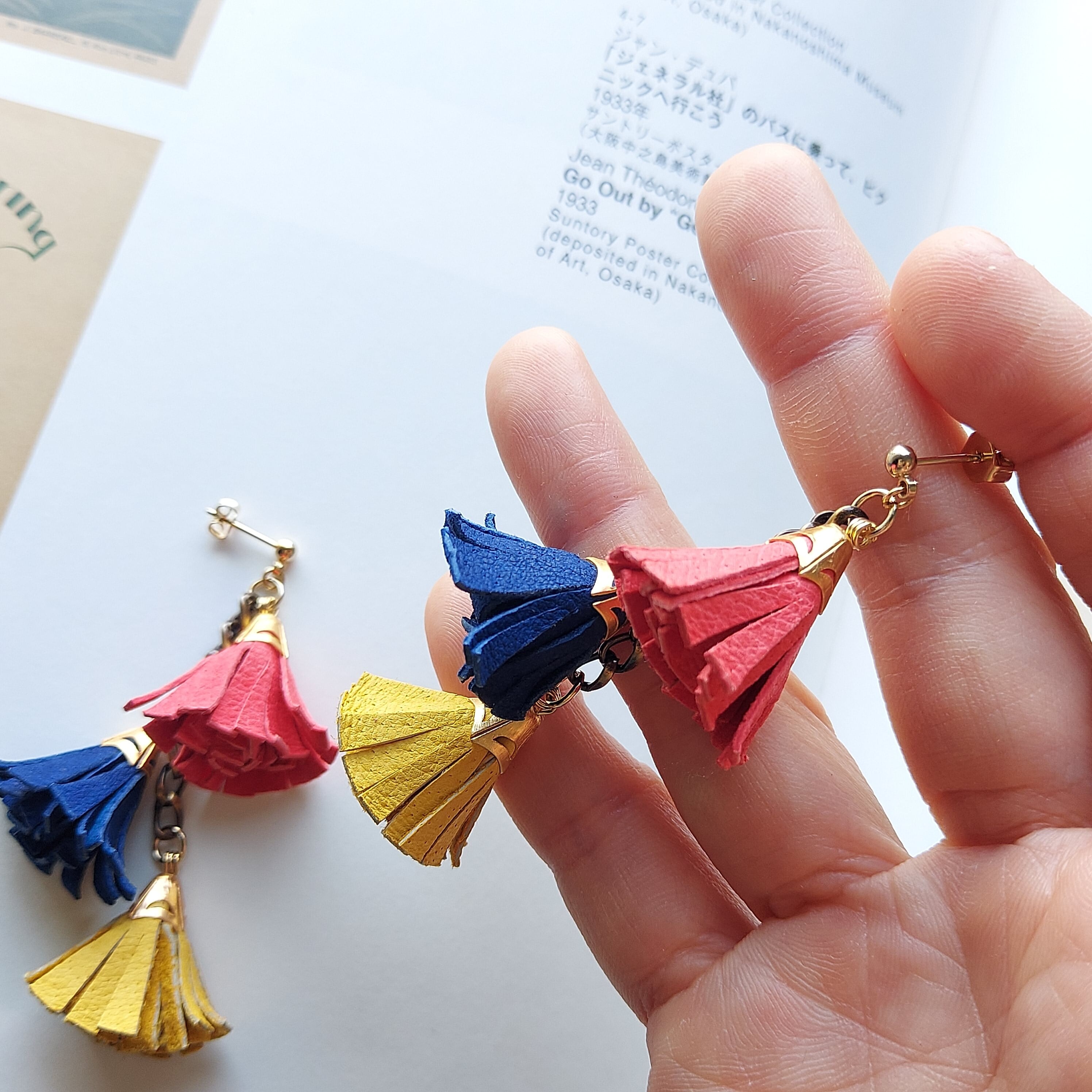 豚革を使用したオリジナルタッセルをアレンジ。着けているだけで楽しい気分になれるような3色デザイン。ボリュームの割に軽いです。